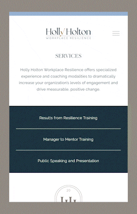 I built a responsive digital experience across web and mobile, creating a cohesive application of Holly’s brand assets.